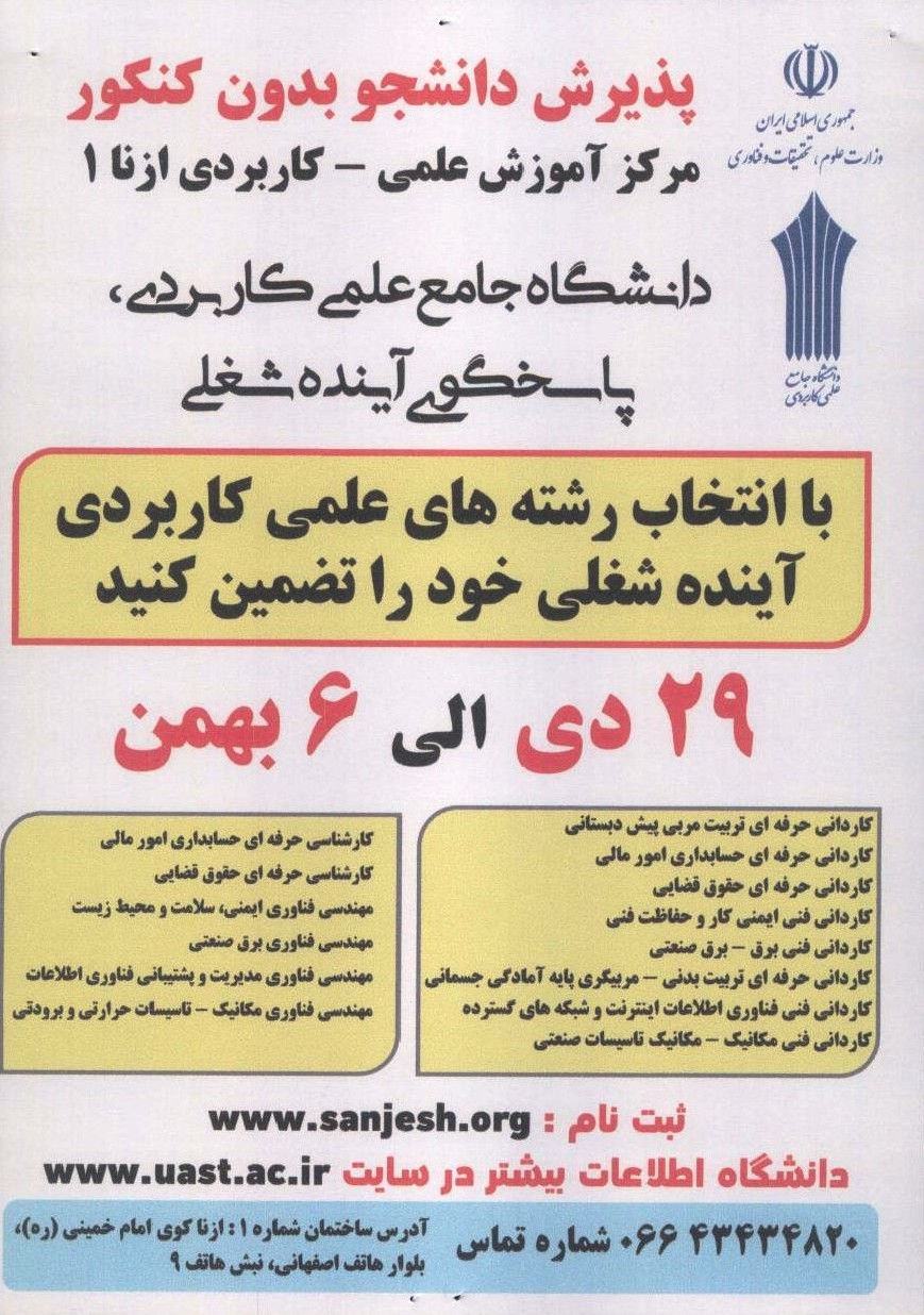 ثبت نام در دوره های کاردانی وکارشناسی در مرکز آموزش علمی کاربردی ازنا 1