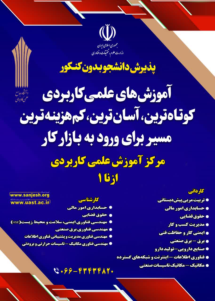 پذیرش دانشجو در رشته های مهندسی فناوری وکارشناسی حرفه ای مرکز آموزش علمی کاربردی ازنا 1 آغاز گردید.