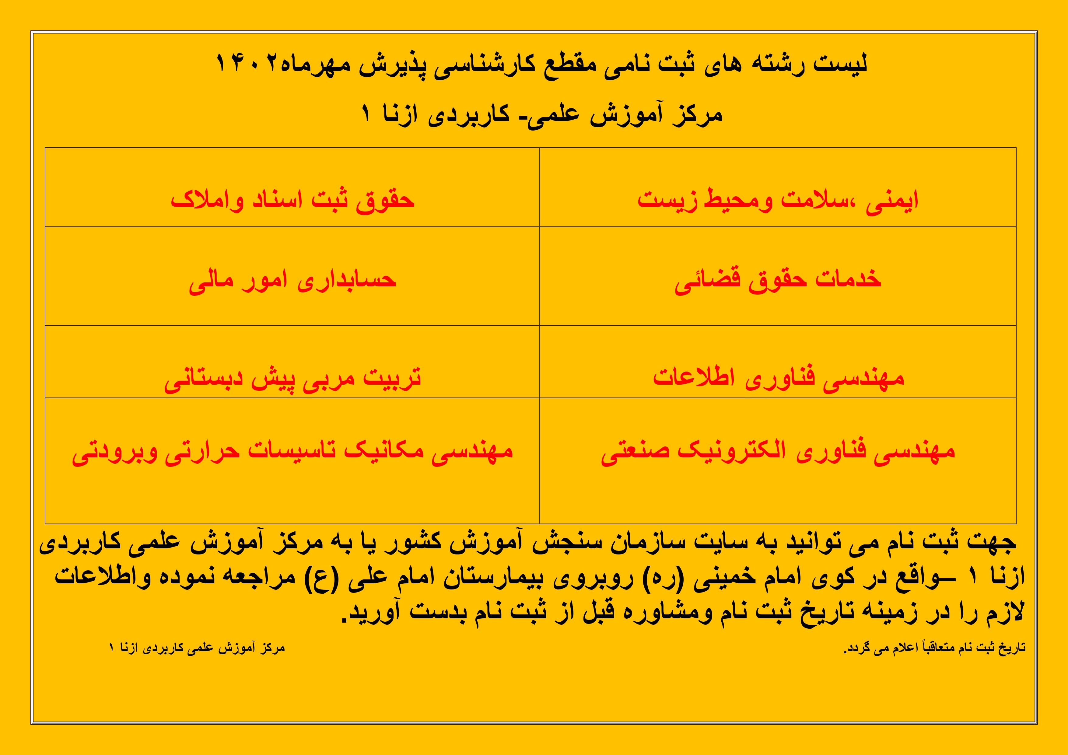 ثبت نام در دوره های کاردانی وکارشناسی در مرکز آموزش علمی کاربردی ازنا 1 آغاز گردیده .