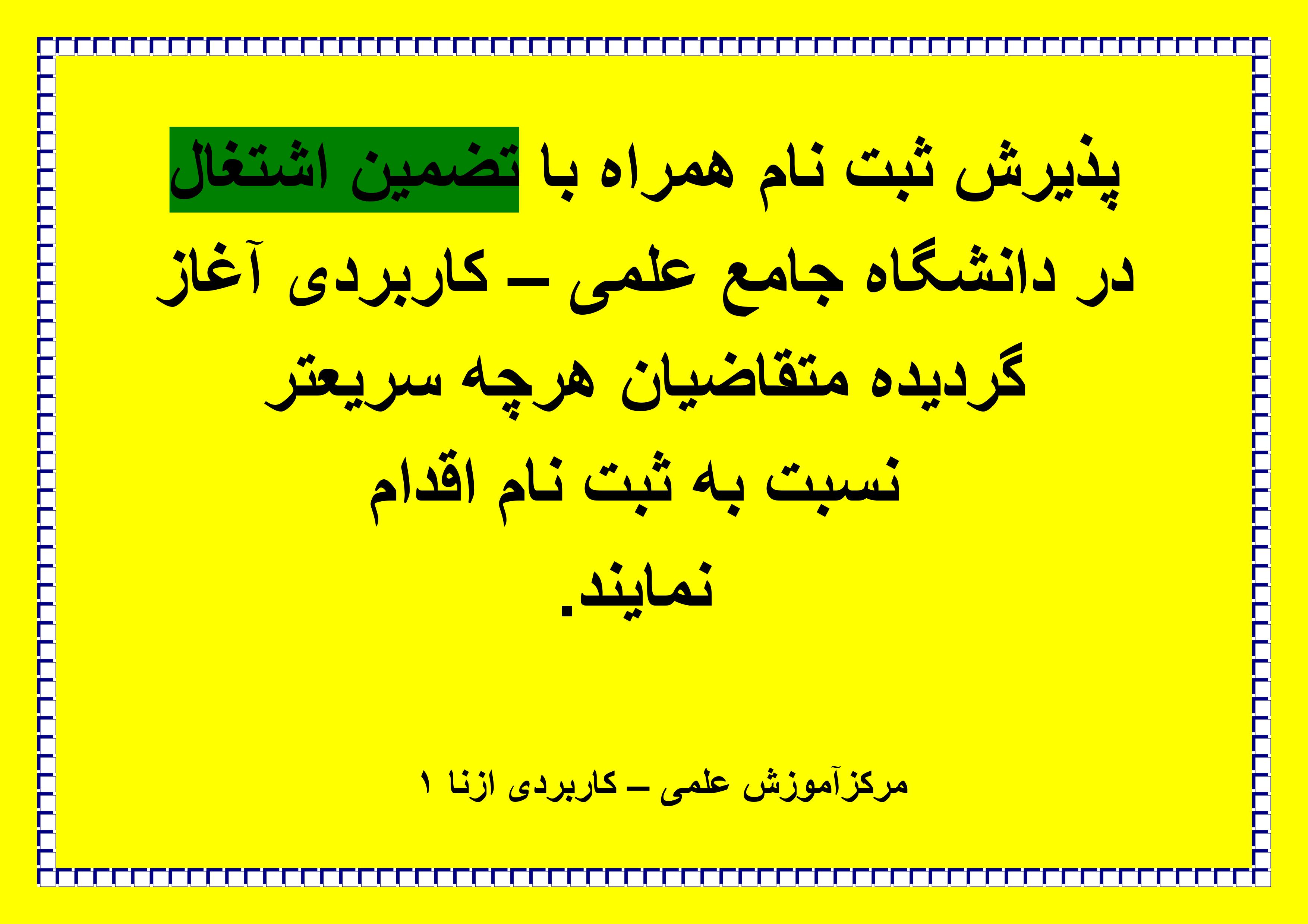 ثبت نام در دوره های کاردانی وکارشناسی در مرکز آموزش علمی کاربردی ازنا 1