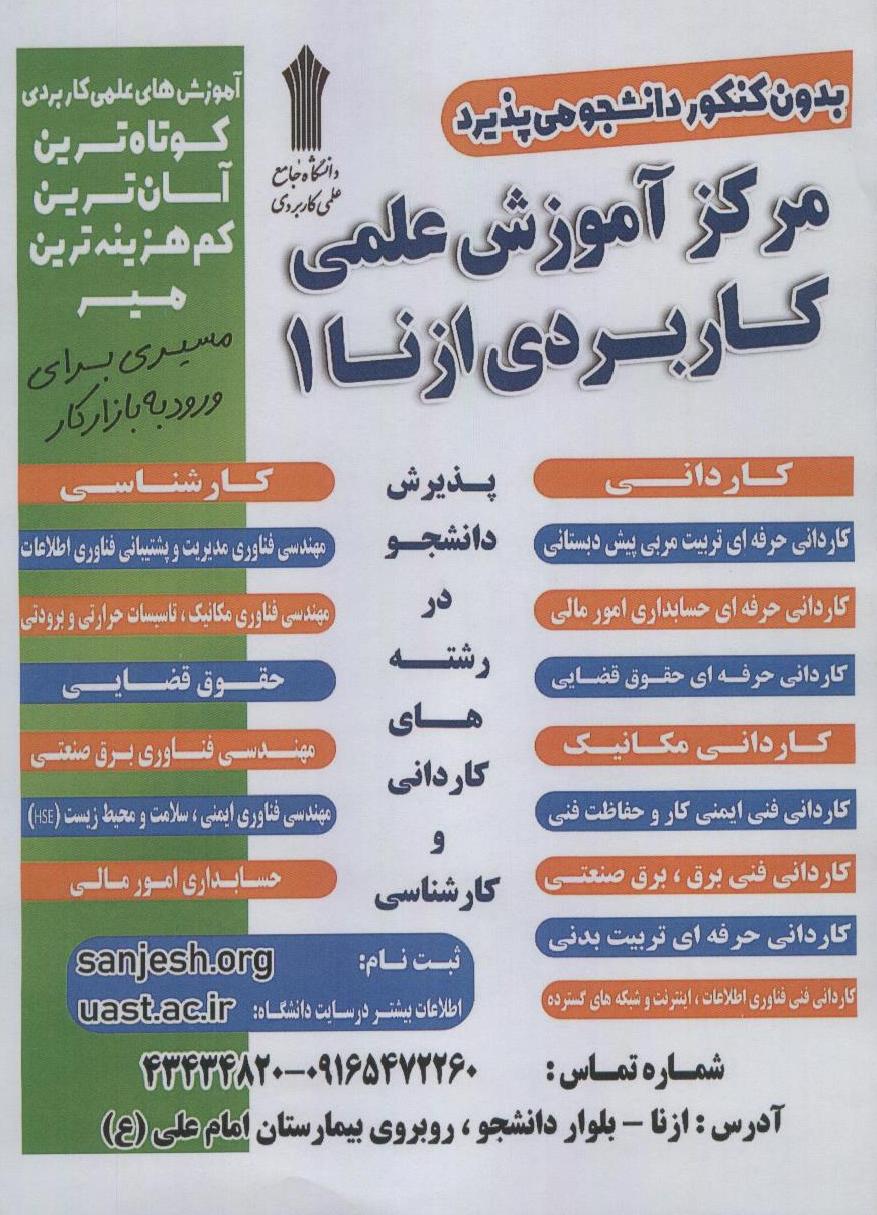 آغاز ثبت نام ورودی مهرماه 1404در دانشگاه علمی کاربردی ازنا 1